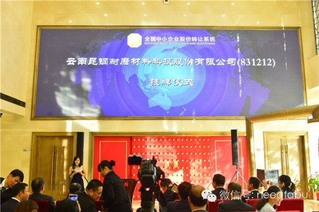 作者:管理員時間:2014-10-14(證券簡稱:耐磨科技,證券代碼:831212)據(jù)《全國中小企業(yè)股份轉(zhuǎn)讓系統(tǒng)關(guān)于同意云南昆鋼耐磨材料科技股份有限公司股票在全國中小企業(yè)股份轉(zhuǎn)讓系統(tǒng)掛牌的函(股轉(zhuǎn)系統(tǒng)函【2014】1458號)》函示,2014年9月26日,云南昆鋼耐磨材料科技股份有限公司成功登陸全國中小企業(yè)股份轉(zhuǎn)讓系統(tǒng)(俗稱“新三板”),成為全國耐磨材料行......